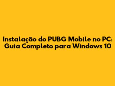 Instalação Do PUBG Mobile No PC: Guia Completo Para Windows 10