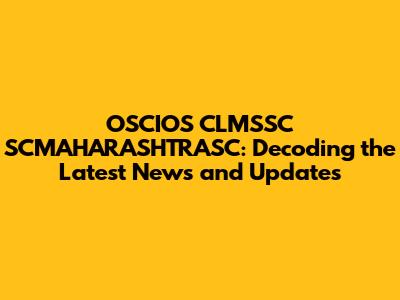 OSCIOS CLMSSC SCMAHARASHTRASC: Latest Updates And News